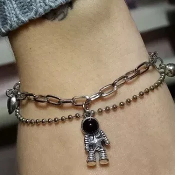 Each bracelet is crafted with precision, featuring a charming star-shaped pattern and an astronaut pendant that adds a touch of cosmic wonder. The double-layer link chain, made of high-quality zinc alloy, is durable yet lightweight, ensuring comfort and longevity. The lobster-claw clasp provides secure closure, making it easy to wear all day.